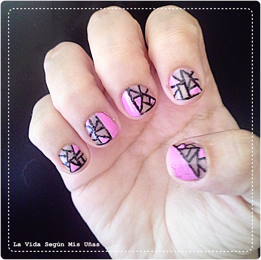 Hoy lunes os traigo una mani que tenía muchas ganas de enseñarosla, es una manicura que no se como la llamareis vosotras, pero yo la llamo mosaico por los triangulos y las formitas que se hacen en las uñas.