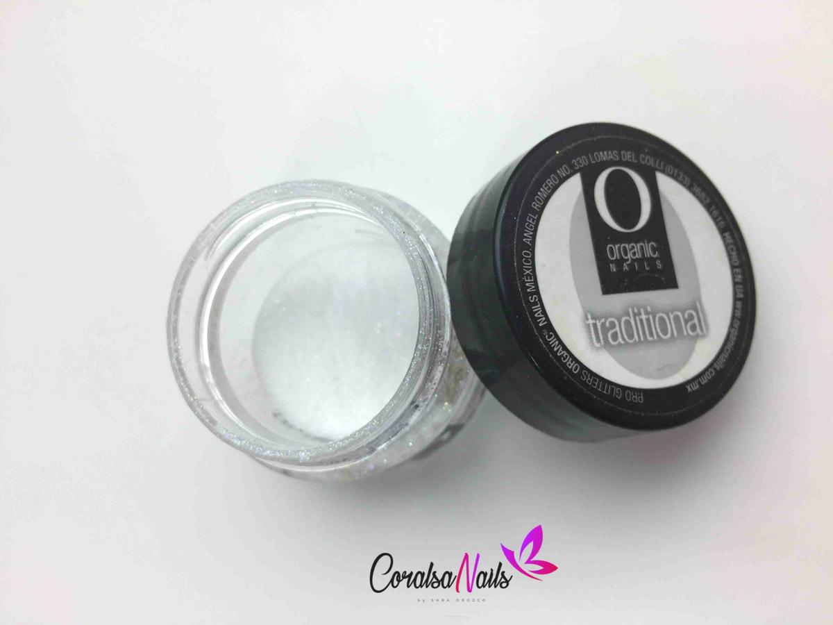 Para el efecto azúcar he utilizado un glitter de Organic Nails que me gusta mucho, lo compré en la feria de uñas, no tengo enlace