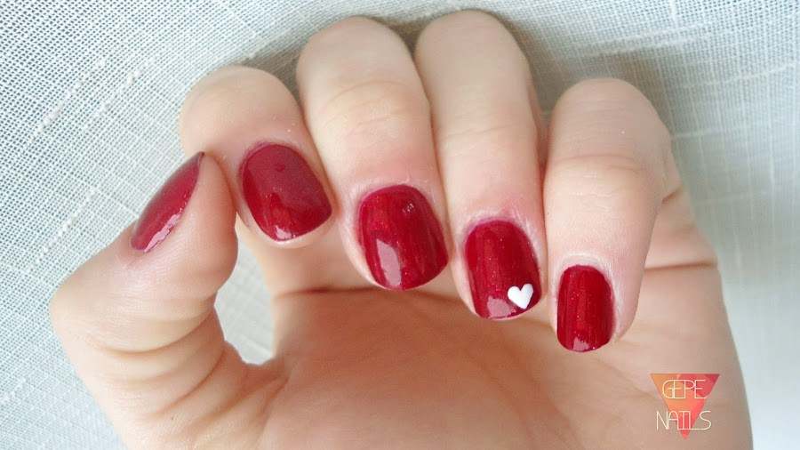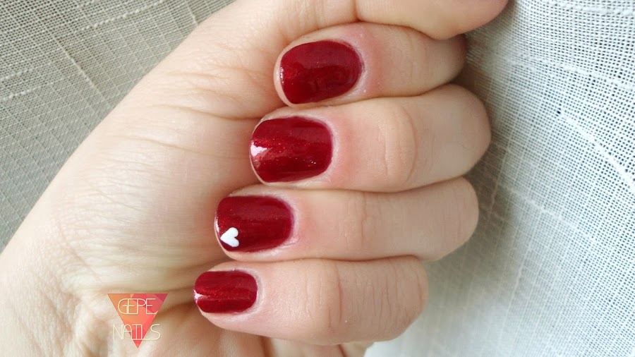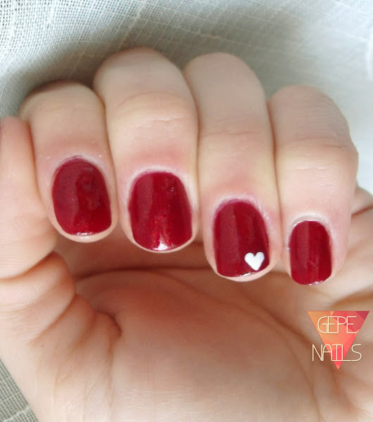 Como veis, solo tiene un pequeño corazón. Eso sí, va acompañado de un super esmalte El ruby pumps, de China glaze. Eso sí que es amor en botecito jeje