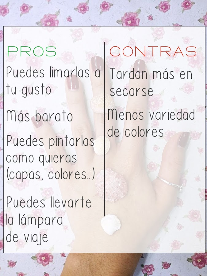 Con la lámpara y los esmaltes de gel en casa, lo bueno es que puedes hacértelas a tu gusto, limarlas menos, dejarlas menos gorditas y que duren más... Y además sale mil veces más barato.