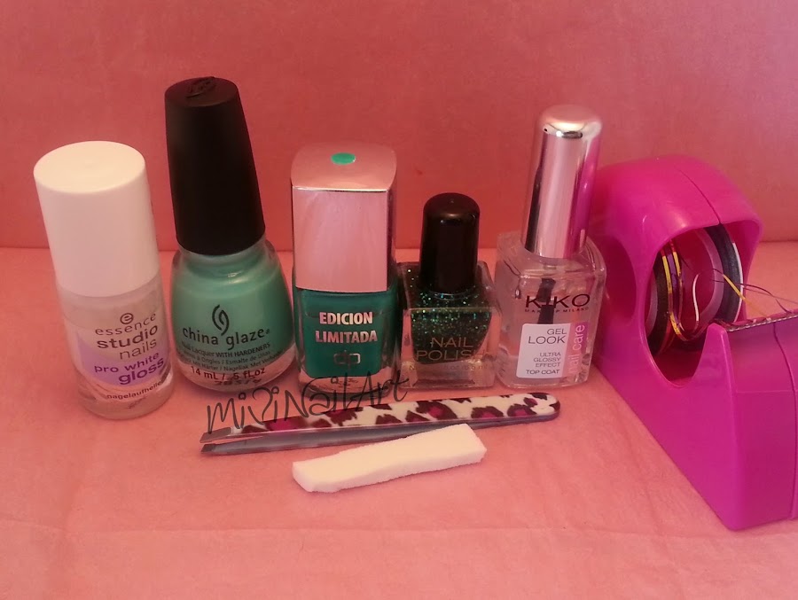 Para hacer este diseño, me decidí a usar el verde esmeralda, era el que mejor me pareció que podría quedar. ¿Qué pensáis vosotras? También me apeteció darle un toque de "brillis" a la manicura y estrené el glitter de H&M que estaba esperando su momento, mirad que maravilla
