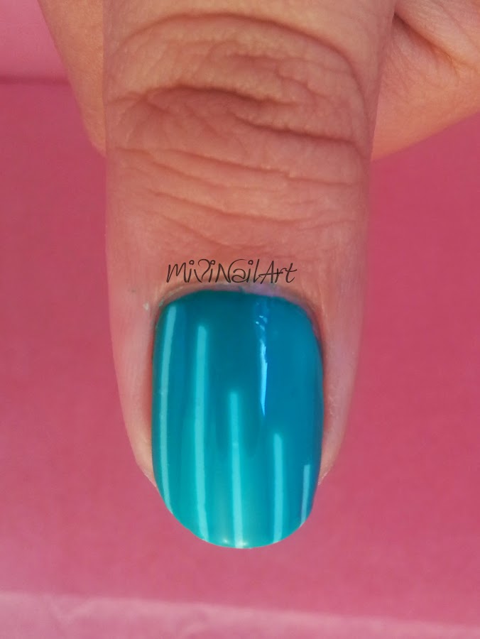 Lo primero que tengo que decir es que cuando lo compré, allí me parecía más azul. Cuando llegué a casa y me dispuse a probarlo me di cuenta que es ese verde agua, que tira a azul y que cuesta tanto describir, al menos a mi.