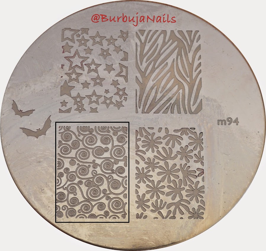 4. Cuando el marfil ha secado pasamos a estampar ¿y como hacemos la estampación? Pues con el pincel negro muy bien escurrido damos unos toques sobre el diseño y con el rojo hacemos una línea fuera del diseño y pasamos el raspador como siempre. Aquí tenéis el vídeo de Skeleton.