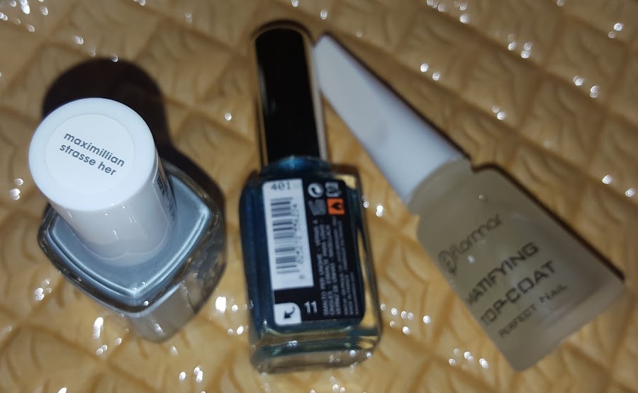 En mi caso me apeteció pintarme todas las uñas en un color sencillo, hacerlo mate con el top coat matificante de Flormar y en el anular utilizar uno con purpurina y brillo.