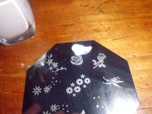 Echa un poco de esmalte bien espeso sobre el diseño elegido.
