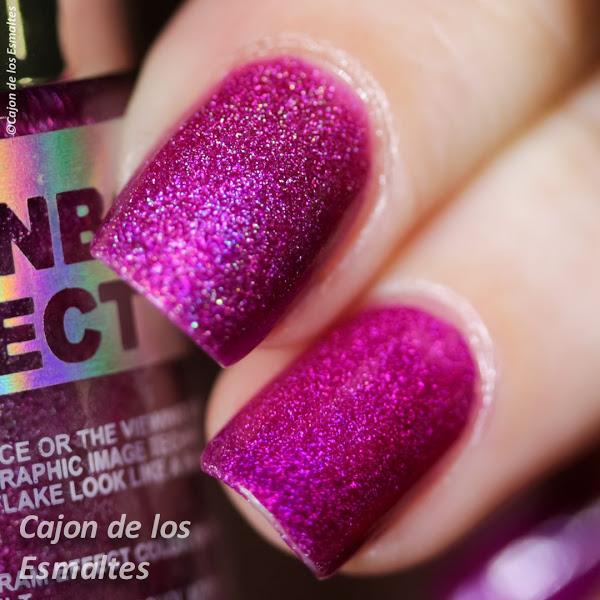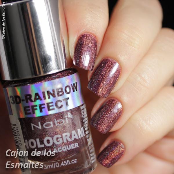 Y vamos con el segundo, Nabi 3D Purple. Hermano de Tawny en todas sus virtudes y defectos. Lo que no me decido es si me gusta más en versión holográfica sin topcoat (índice y medio) o en versión casi sin holografía pero super brillante (anular y meñique).