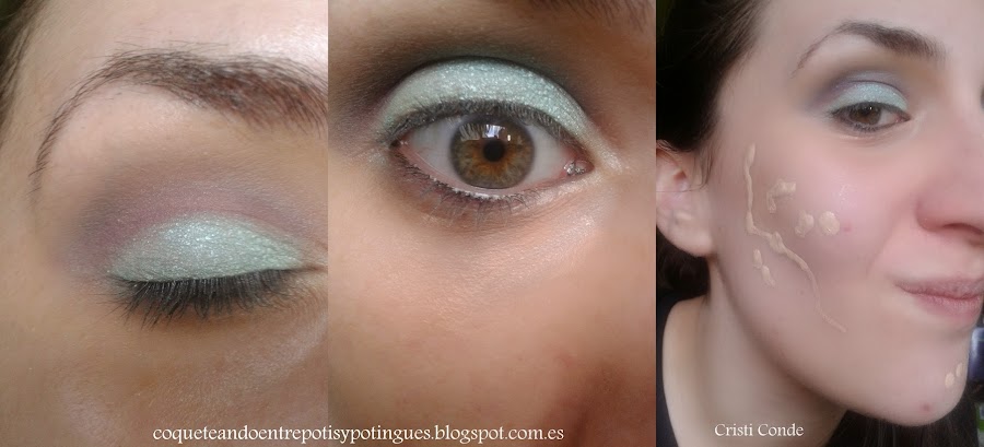 2º Con la sombra en crema verde 62 Mint Sorbet de Belle maquillo el párpado móvil, la aplico con el dedo dando toquecitos en el párpado.