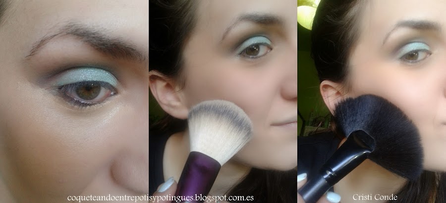 6º Aplico la BB Cream de Garnier en el rostro con la brocha para colorete de Deliplus.
