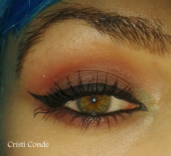 8º Maquillo el párpado inferior primero con la sombra granate y por encima paso un poco de la sombra naranja.