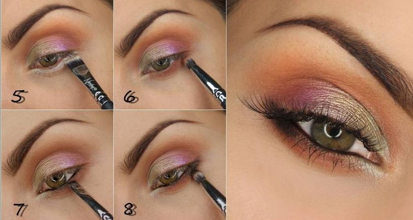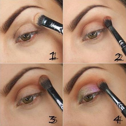 Encima de la sombra ocre, aplica sombra color rosa. Pero recuerda aplicar esta sombra hasta la mitad.