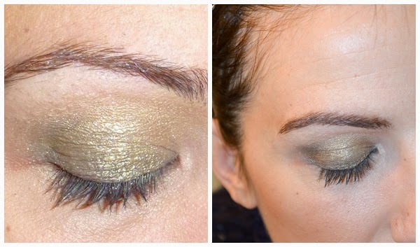 Foto 5: no te cortes a la hora de aplicar sombra dorada. Sé generosa, ya que cuanto más mejor. Aunque sea dorada es un tono claro y hay que poner bastante. Extiéndela bien con suaves golpecitos. Os recomiendo que uséis si es posible, sombra en crema, dura más y es más fácil de aplicar.