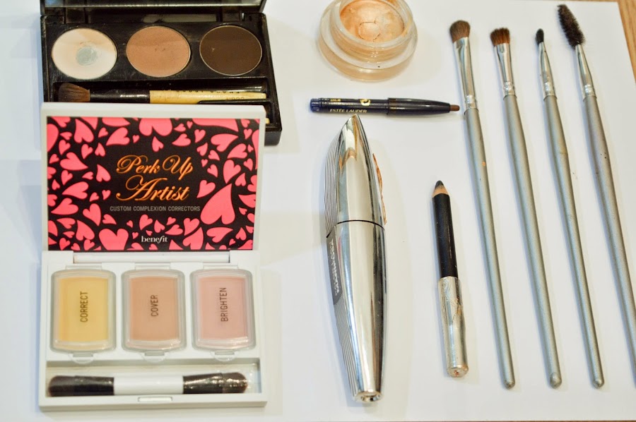 Foto1 : Mis ojos antes de ser maquillados, corrector en tres fases Perk Up y blush, ambos de Benefit.
