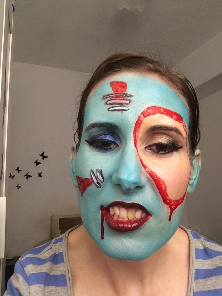 Hola preciosas!Sigo con mis maquillajes de Halloween (tranquilas ya es el penúltimo jajajja) y esta vez no me inspiré en nada en un principio pero fueron surgiendo las ideas según lo iba realizando y pues me ha salido un pitufo sangriento jajajaj.