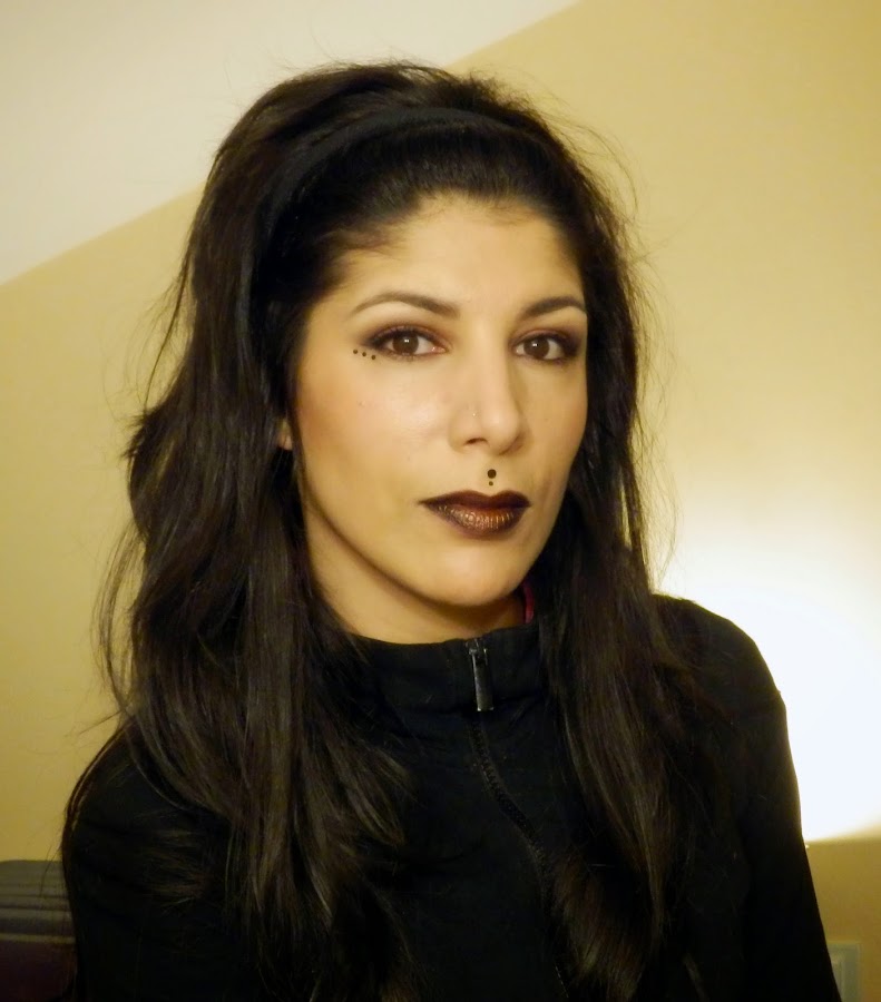 Con un lápiz para cejas y sombra marrón he definido un poco las cejas, importante porque con los labios oscuros es necesario enmarcar más esa zona del rostro.