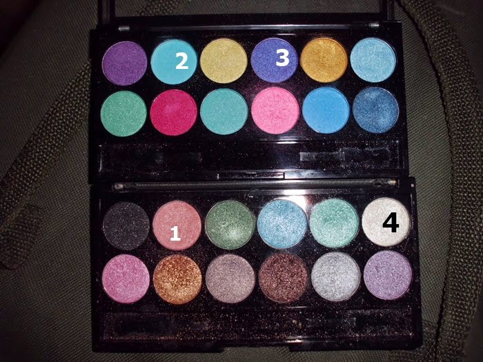 Estas son dos de mis paletas de MUA. He puesto el numero de orden sobre el color que he usado.