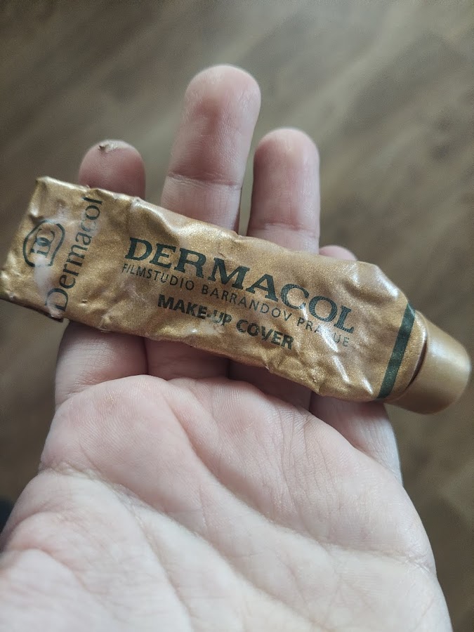 2- Me apliqué la base "Makeup-Cover" de DERMACOL en el tono nº10, es una base muuuy muuy cubriente ideal para fotos porque podemos conseguir un efecto "Photoshop" y cubrir todas las imperfecciones. No la recomiendo para uso de diario a no ser que tengas un problema cutáneo como acné, rosácea... ya que al ser bastante cubriente cubre todo a la perfección. Aunque para ese timpo de afecciones es mejor una base de la marca PURO BIO que es más natural.