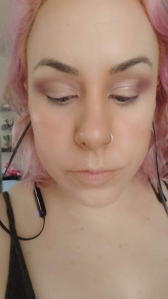 Primero, por toda la cuenca he aplicado la sombra marroncita de la paleta para crear una "base". No he usado prebase porque no iba a llevar este maquillaje más allá de las fotos así que si queréis poneros prebase podéis hacerlo sin problemas.