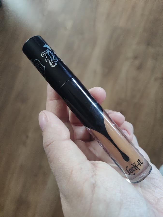 3- Corregimos nuestros rasgos para afilarlos, para las correcciones oscuras he usado el "Lock-It" de KVD que compré por 3 euros en las rebajas y me encanta como queda. Realmente es un corrector de ojeras fluido de bastante cobertura peeeero al ser un tono oscuro y tener el aplicador es muy fácil de usar y queda genial. Yo me he corregido la frente, para hacerla más corta, la nariz para hacerla más fina, los pómulos para filarlos y la papada.