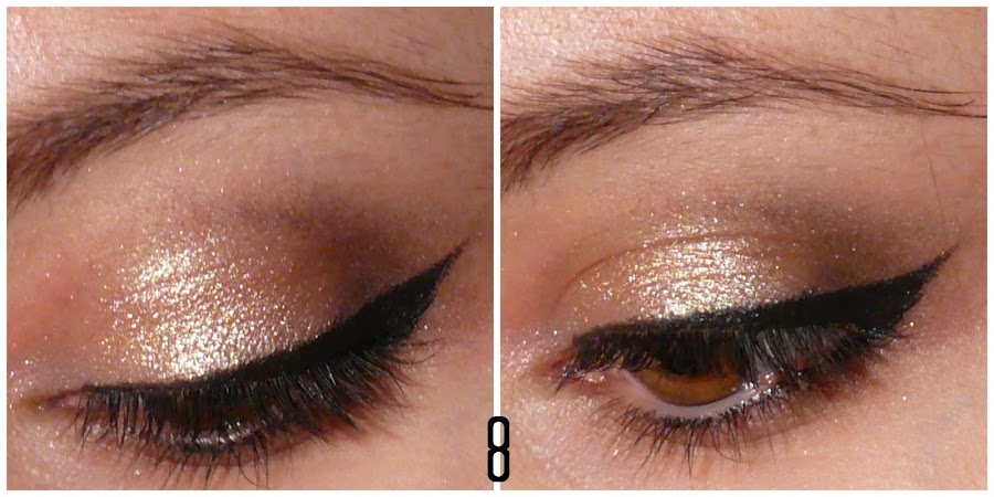 7. Del lagrimal a mitad de ojo aplicaremos el pigmento dorado. Una vez hecho todo esto, lo difuminaremos muy muy bien.