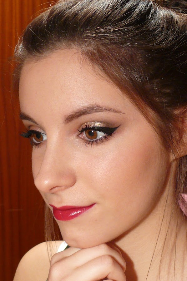 He querido que los labios también tuvieran un poco de protagonismo por lo que el labial que escogí sigue siendo un tanto fuerte. De igual modo podéis optar por un labial nude o rosa claro para que el protagonismo del maquillaje lo adquieran los ojos.