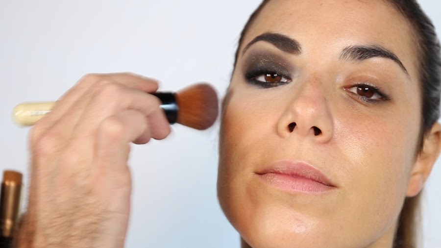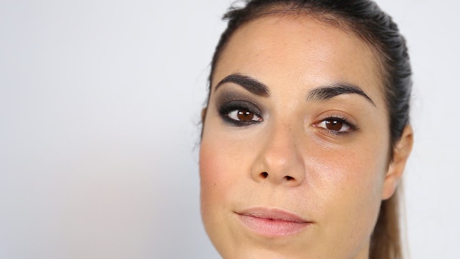 Un maquillaje fácil de hacer, donde potenciamos la mirada y cargamos los ojos, con un ahumado, negro y brillante... una piel luminosa, radiante y con destellos.