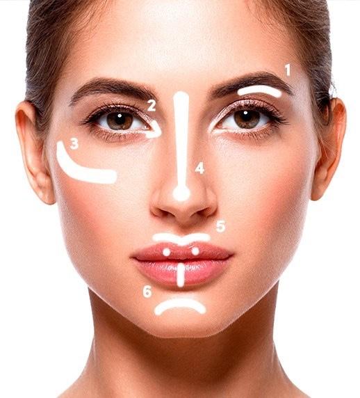 4- Aplica un Iluminador líquido en las zonas del contorno de los ojos labios y mejillas