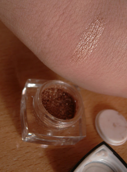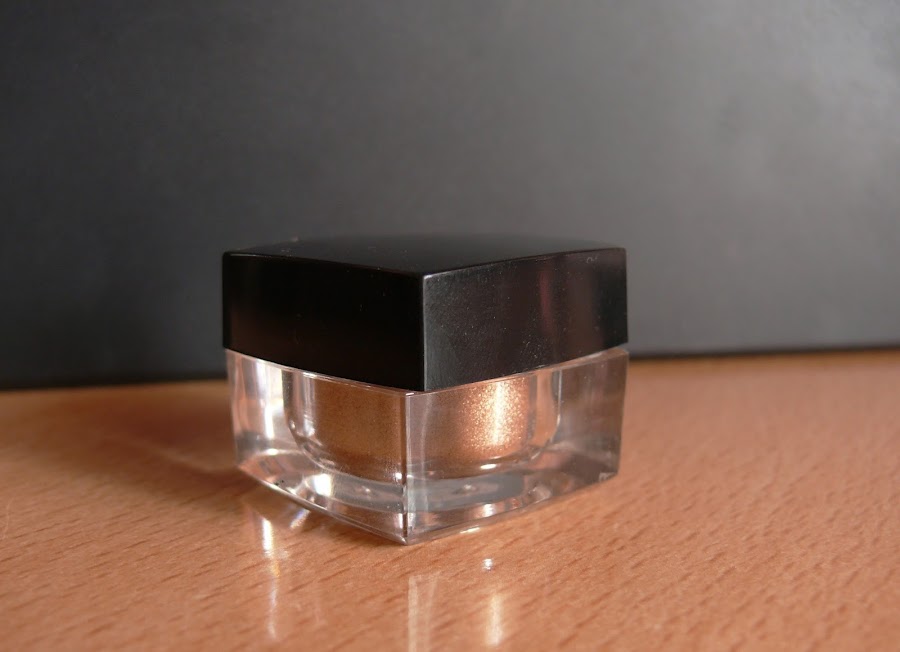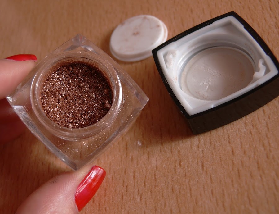Encima de esa base que habíamos creado, aplicaremos una sombra con destellos que a su vez será también la base de la siguiente sombra, en este caso el pigmento (fotos al final de la entrada) protagonista del look.