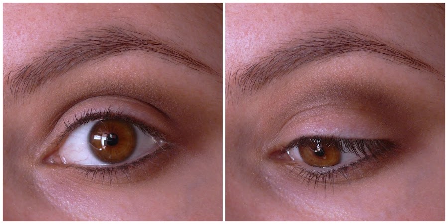 Lo siguiente que hago es con una sombra marrón más oscura (ya centrándonos más en la cuenca) aplicarla desde la "V" interna hasta la "V" externa del ojo. Siempre difuminando ;)