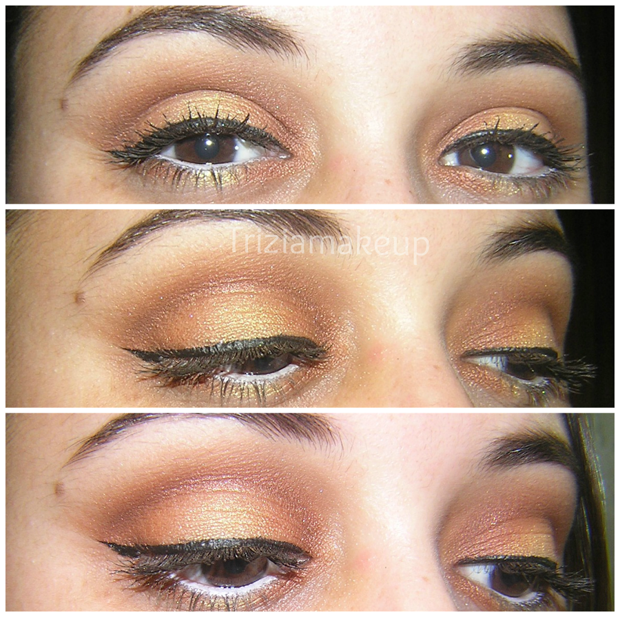 4. He aplicado la prebase de pigmentos en el centro del párpado y luego he depositado el pigmento doradito.