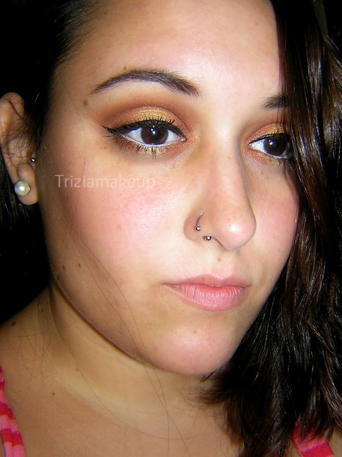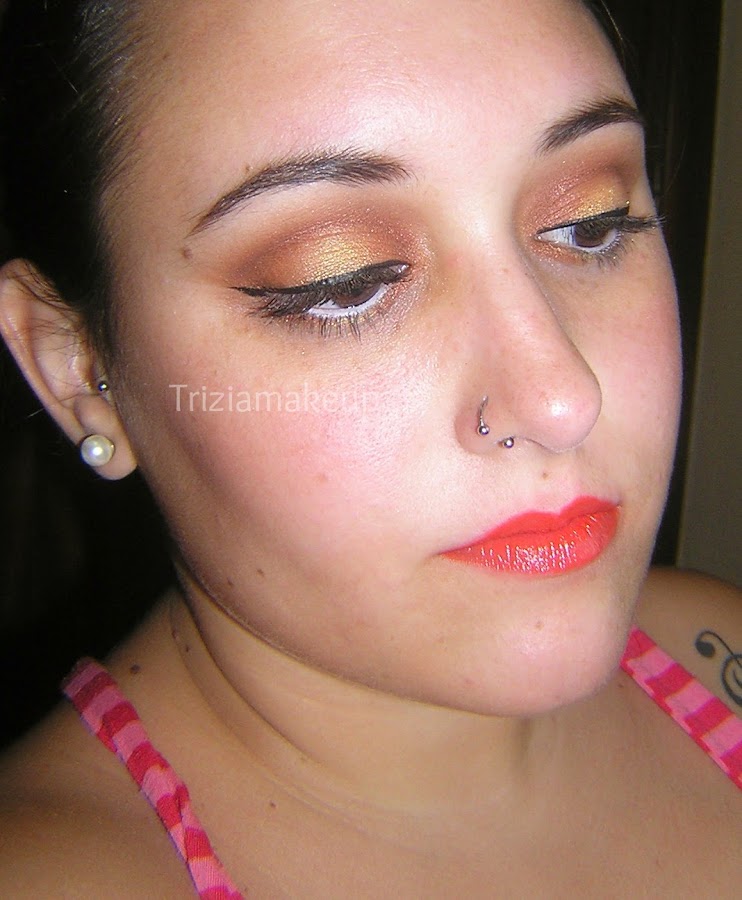El maquillaje está realizado en tonos narajas que me parece perfecto para verano ya que le da calidez al rostro.