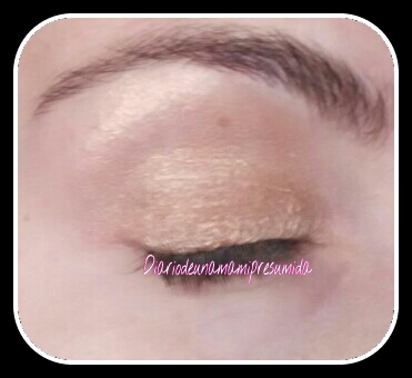 A continuación he aplicado en todo el ojo completo la sombra doradita, es muy clarita, con tono amarillo que da mucha luz. Y la he subido al arco de la ceja para iluminar todo bien. Así: