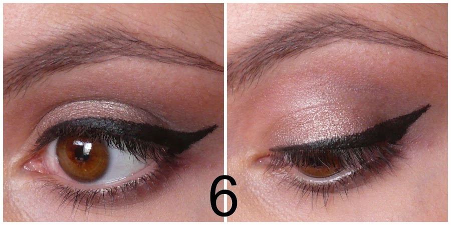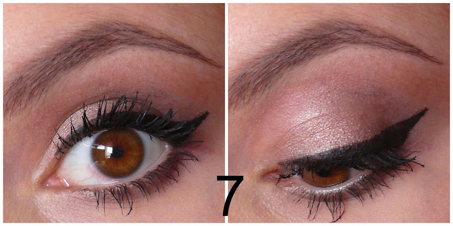 6. Delinearemos el ojo con un eyeliner, gel liner, lo que tengáis, de color negro. Esto va siempre a gusto de cada persona, yo decidí hacerle rabillo porque me encanta como queda.