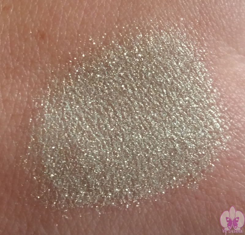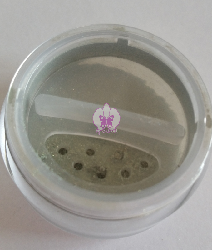 Seguimos con la sombra mineral suelta, en el tono Green Opal, que quien me conoce, nunca me regalaría nada verde porque es el color que menos me gusta, pero esta sombra me parece preciosa. Tiene mil destellos en dorado y es un verde muy clarito, que me ha gustado mucho. Además, pigmenta que da gusto.