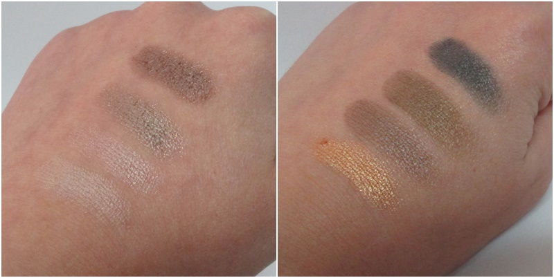 El estuche, antes de que se me olvide, tiene una medida, aproximada, de 12 x 5 x 1 cm, el cual, es perfecto para llevar de viaje o contigo en el bolso. En cuanto a su gama de sombras, me parece muy acertada e ideal para crear looks naturales y de día. En la siguiente foto podéis ver chuaches de cada una de ellas y, como podéis apreciar, ninguna de las sombras es totalmente mate, ya que, todas tienen algo de brillo, ya sea perlado, metalizado o con shimmer (pero nada exagerado que dejen tanta brillantina).