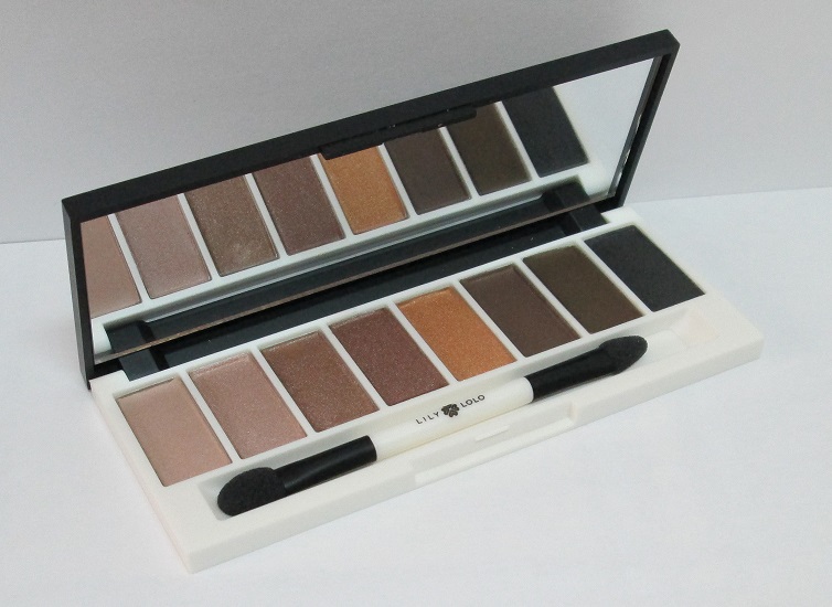 Se presenta en un estuche alargado, de plástico blanco y negro, bastante fuerte y resistente, donde en la parte superior nos encontramos el logo de la marca, en negro, que está en relieve brillante, y debajo de la misma, los nombres de las sombras, su caducidad y cantidad (8 gramos en total). Al abrirla, en su interior, nos encontramos un espejo bastante amplio, además de un aplicador doble de esponjita (el cual, no suelo utilizar...), y ¡como no!, las 8 sombras minerales, en tonos nudes, neutrales y marrones, donde predominan los subtonos rosados, beiges, dorado, algún color de subtono frío y un gris, casi negro.