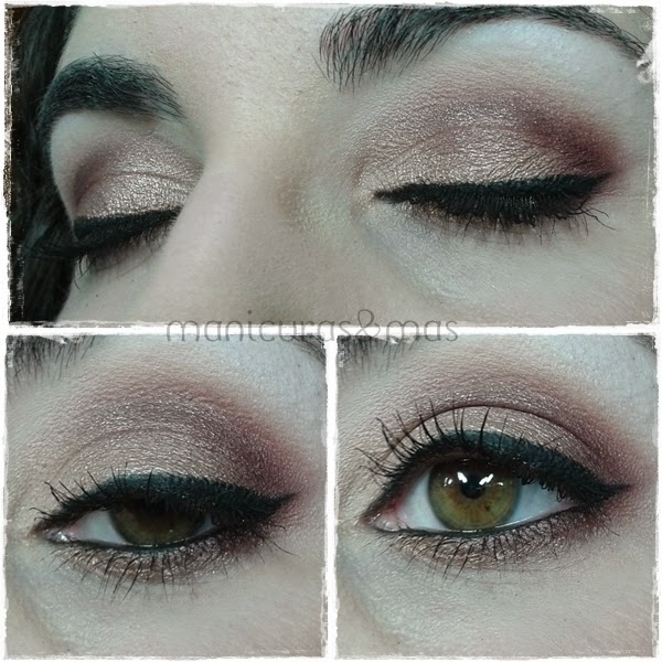 Os enseño solo los ojos porque el rostro no tiene nada especial, lo he maquillado como siempre, y en los labios he aplicado solo un gloss transparente (en la primera foto lo podéis ver), ya que los ojos van bien marcados y prefiero no recargar demasiado el look. He pensado que si lo usamos para la noche, se le puede poner un labial rojo oscuro y creo que le puede ir bien...