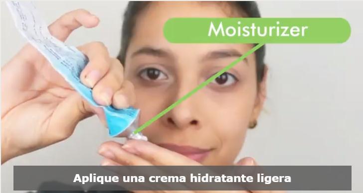 Aplique una crema hidratante ligera. Esto evitará que la piel se vuelva demasiado grasosa durante el día y ayudará a hidratar cualquier parche seco en la piel.
