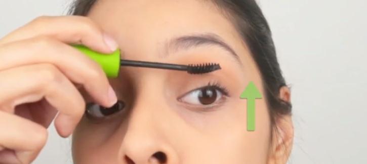 9. Después de esto, aplique rímel. Aplicar a las pestañas superior e inferior con la punta del rímel orientado hacia la esquina exterior de su ojo. Una capa debe ser suficiente .