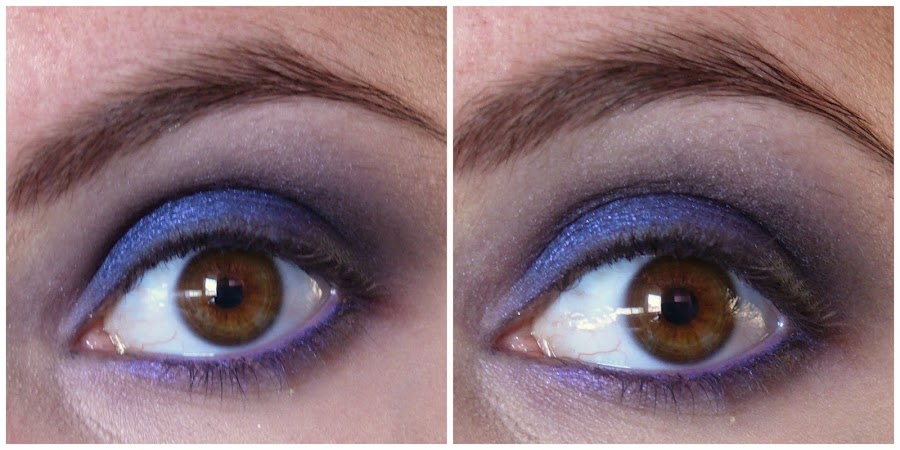 1. Delinearemos la linea de agua con un lápiz en color moradito a la vez que lo bajamos un poco hacia el parpado. Una vez hecho lo que haremos será difuminarla muy bien y pasar la brocha que habíamos utilizado para la sombra principal sin coger mas producto por el parpado inferior.