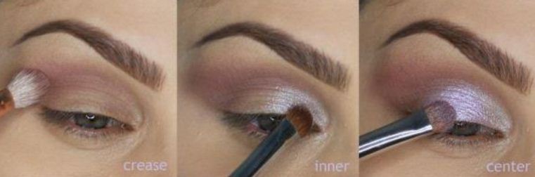 Luego de colocar el corrector de ojeras o la pre-base de maquillaje y difumar muy bien, vamos a colocar sombra color rosa viejo en la línea que divide el párpado móvil del párpado fijo.