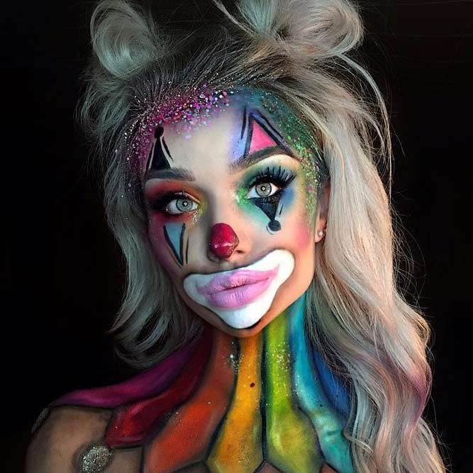 En mi caso, soy bastante torpe con este tipo de maquillajes, pero aún así, si tienes un buen producto y buscas un maquillaje no muy complejo, puedes conseguir buenos resultados. Estos maquillajes que aparecen a continuación están inspirados en payasos. Lo bueno que tienen este tipo de maquillajes es que si te desvías un poco puedes corregir difuminando y disimulando que tu "error" es en realidad parte del disfraz!