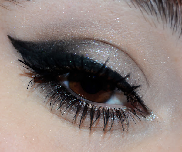 Sabéis que no puedo vivir sin un buen delineado. Así es que si me maquillo los ojos, el 90% de las veces usaré delineado. Y esta vez no podría ser menos! Así que lo que realicé fue un potente delineado, en cuanto a longitud, ya que como podéis observar en los dos primero tercios del ojo, lo mantuve bastante fino.