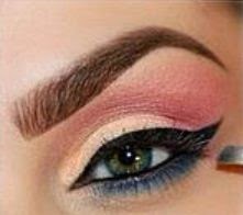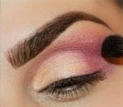 3.-Usamos la sombra rosa y la aplicamos en la esquina del parpado ,difuminandolo hacia arriba del parpado sin llegar al hueso de la ceja.