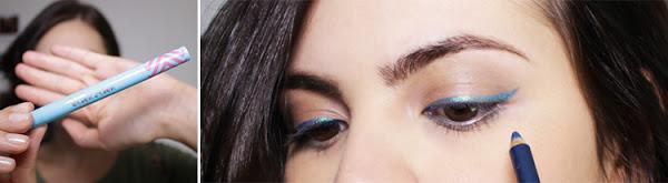 Continué con el delineador turquesa de Kiko primero, como mencionaba en el post del haul, hay que trabajarlo con mucho cuidado porque podría provocar un desastre, lee más aquí. Y para las líneas de agua (superior e inferior), usé un lápiz azul de la marca EGO en el Nº100 Deep blue.