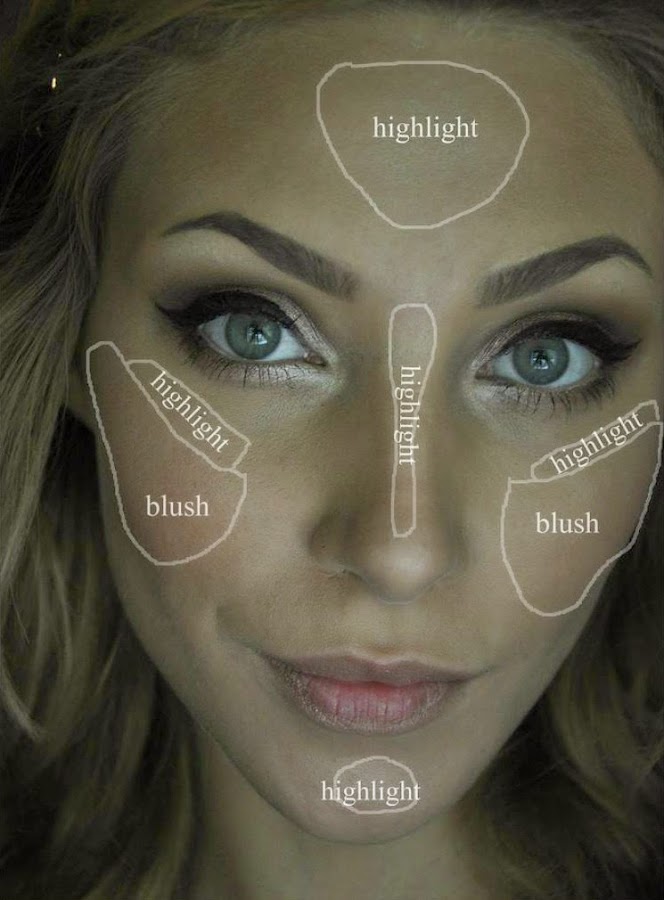 Para ir terminando, aplica iluminador y polvos bronceadores en determinadas partes del rostro para crear volúmenes. En estas fotos se ve súper claro dónde aplicar cada uno de ellos: