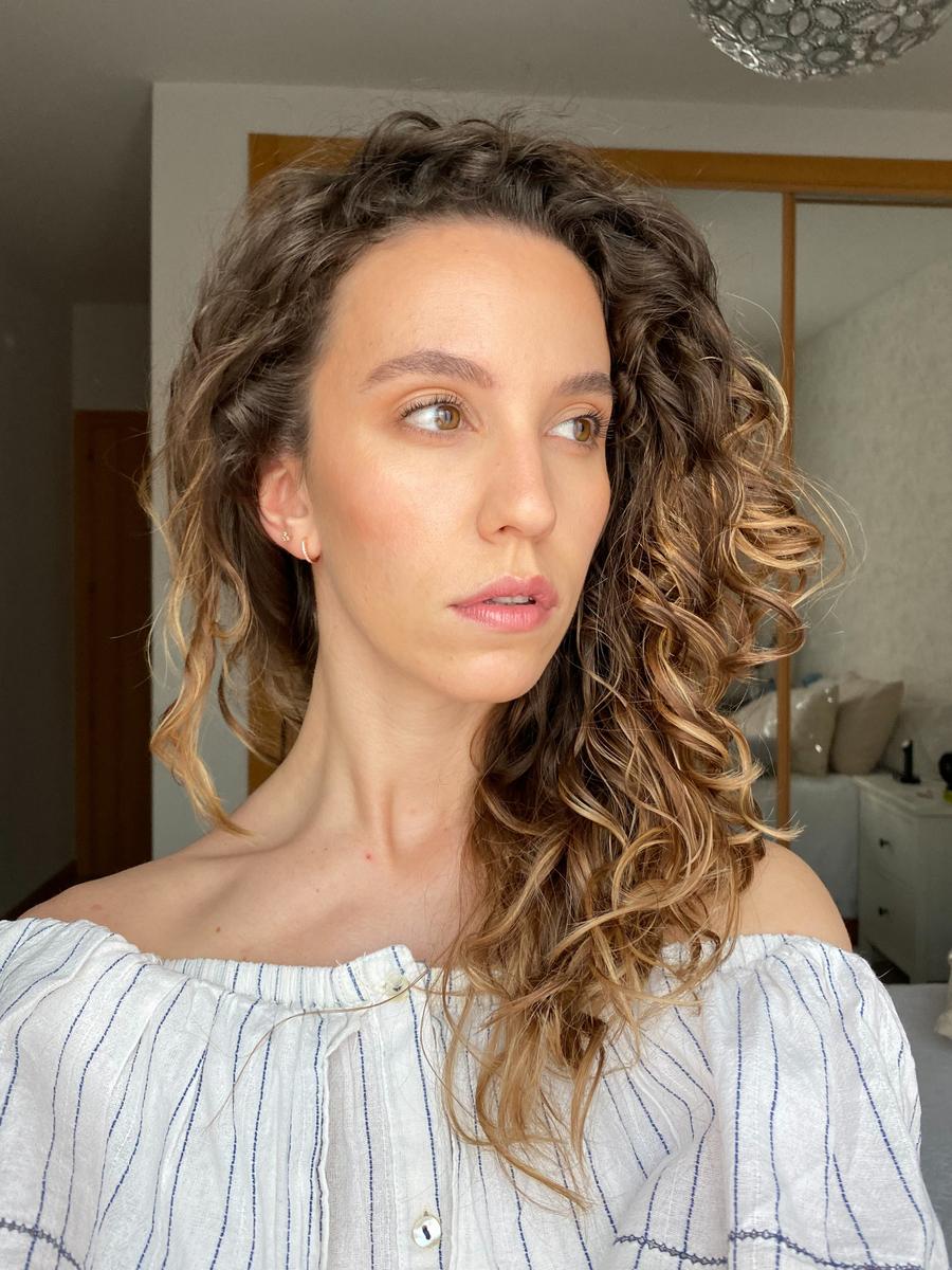 Ya que estamos en verano he utilizado, de manera muy sútil, la técnica del efecto bronceado. Lo he aplicado debajo de los pómulos y en la línea del cabello. No he tratado de corregir ninguna facción, simplemente broncear un poco la piel.