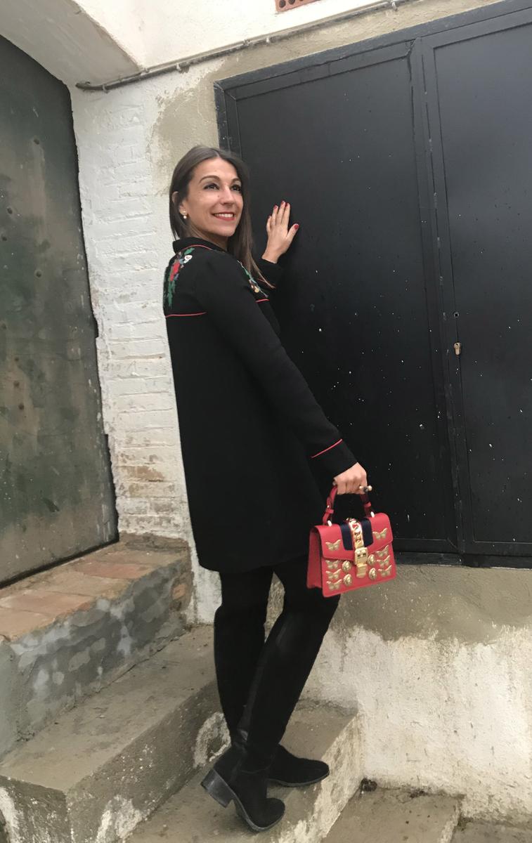Aunque dependiendo como lo combines conseguirás un outfit mucho más ” lady western” añadiendo bota o botín campero, en mi caso como no quería robarle el protagonismo, opté por botas planas en negro y bolso en rojo.