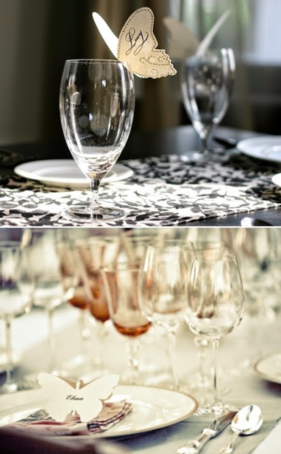 Utilizando frutas, piñas o corchos como porta-tarjetas, elementos adaptados a la temática de la boda, tarjetas con diferentes formas, tarjetas adornadas junto a la carta de la comida...podemos obtener un resultado original con el que sorprender a nuestros invitados.