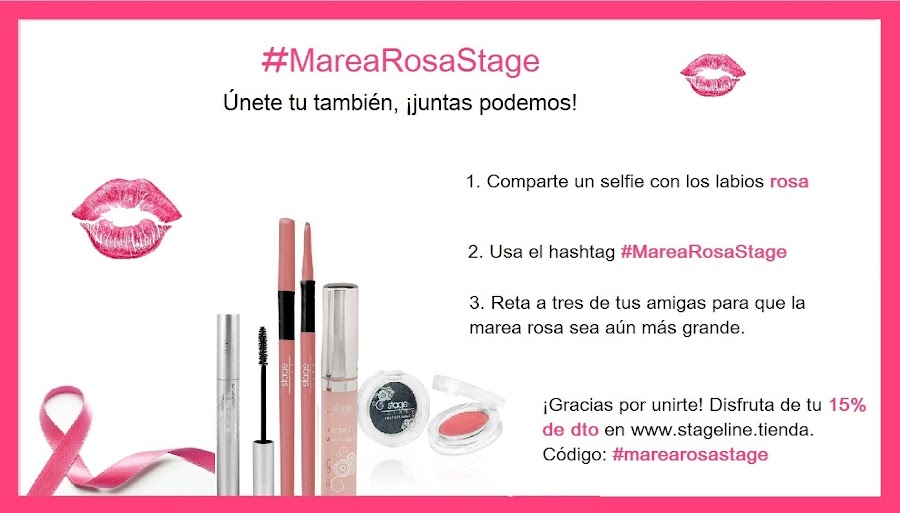 Hoy os traigo una entrada extra, bastante cortita, para anunciaros una propuesta que nos han hecho desde Stage Line para unirnos a la #MareaRosaStage en apoyo al cáncer de mama con el lema ¡Juntas podemos! Yo ya me he unido a esta campaña, porque, aunque sea de manera simbólica, quiero apoyar a todas las mujeres que están pasando por esta enfermedad, porque es algo que a todas nos preocupa y a cada una de nosotras nos puede llegar a pasar, pero juntas somos más fuertes y tenemos mucha fuerza, con la cual se puede superar cualquier adversidad, así que muchísimo cariño, ánimo y fuerza a todas las mujeres que estén pasando o hayan pasado por el cáncer de mama, ¡juntas podemos!.