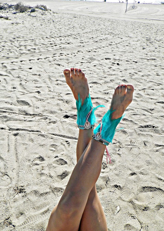 Las parejas de pulseras o tobilleras Mariela Álvarez se colocan con las plumas hacia tí y puedes adornar cualquier vestido, chaqueta o cazadora, haciendo que la utilidad pase de ser una simple pulsera a ser el elemento que modifique el look que desees llevar.